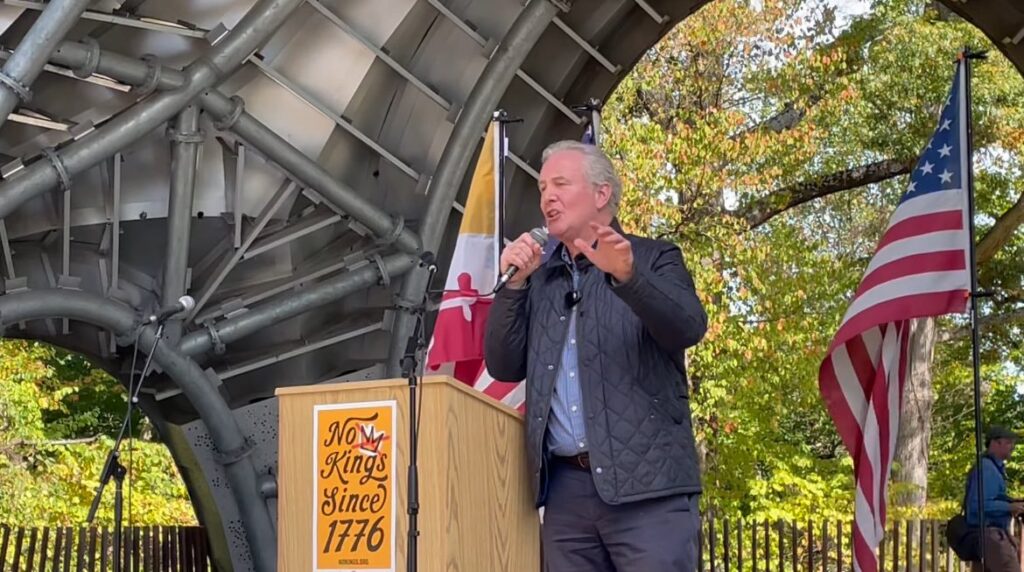 CDC partnered with Indivisible HoCo, the Thurgood Marshall Democratic Club, the Ellicott City and Western Howard Democratic Club, and HoCo Young Dems to bring 6,500 people to the streets of Columbia to say “no throne, no king, no crown” to the Trump administration. We welcomed US Senator Chris Van Hollen, US Representative Sarah Elfreth, musicians Damon Forman and Therren Dennis, the ACLU, and community members at a rally before the sign-waving portion of the event. You can view Senator Van Hollen’s speech here.
